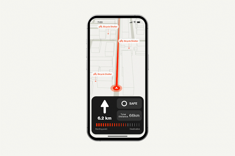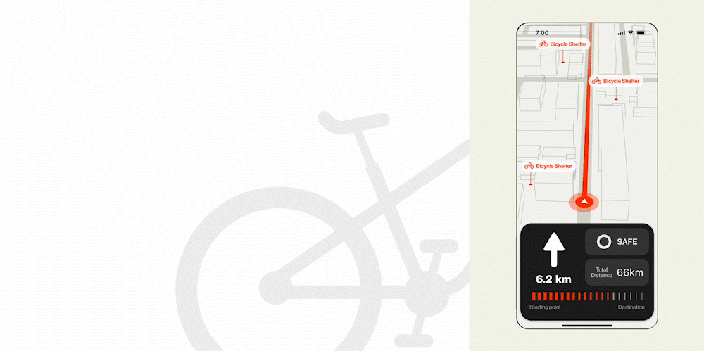 자전거 라이더를 보호하기 위해 설계된 기술입니다. 이 제품은 라이딩 중 주변의 잠재적인 위험 요소를 감지하고, 앱 기반 서비스를 통해 라이더의 동기부여를 돕는 도전과제를 제공합니다.