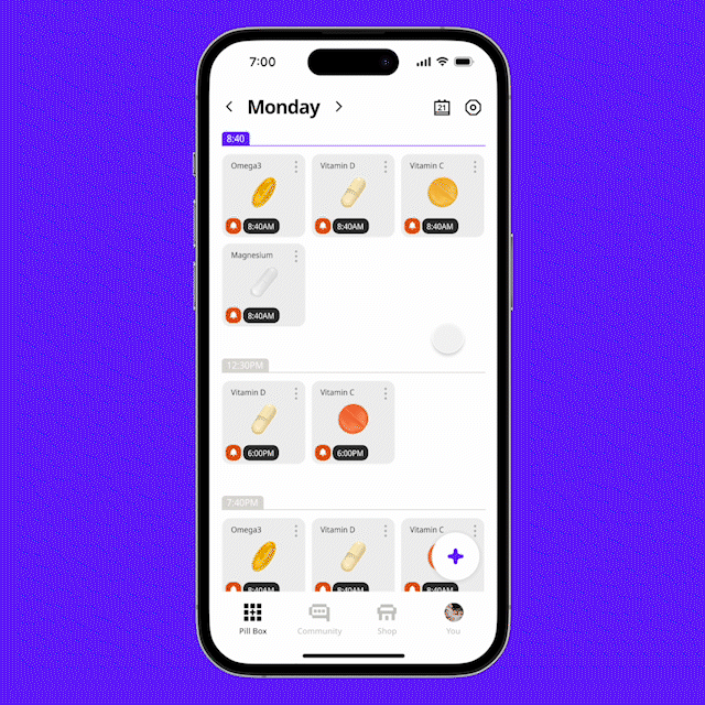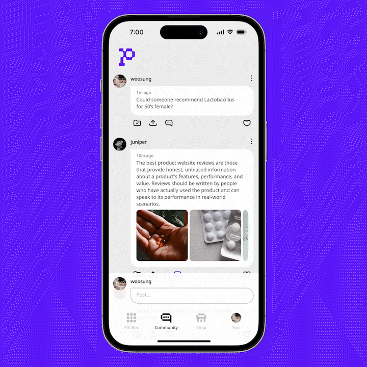 건강 관리 약을 복용하는 인구가 증가함에 따라, 매일 정해진 시간에 약을 복용하는 것이 어려워지고 있습니다. 심지어 일부 약은 제때 복용하지 않으면 위험할 수 있습니다. 이러한 이유로, 우리는 사용자가 적절한 시간에 약을 복용할 수 있도록 알림을 제공하는 p box 앱을 설계했습니다.
